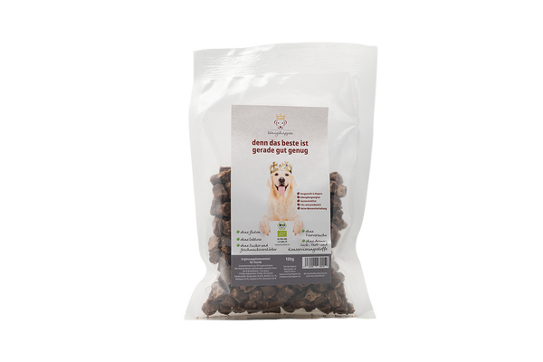 Königshappen - Bio-Huhn für Hunde ist ein Ergänzungsfuttermittel. Das Leckerli ist der ideale Begleiter für das Training oder Gassi gehen!